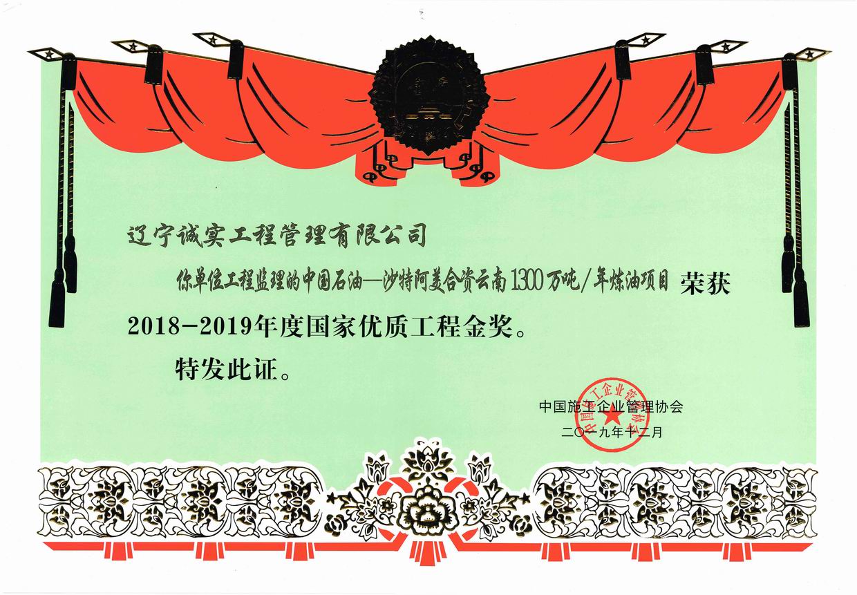 2018-2019年度國(guó)家優(yōu)質(zhì)工程金獎(jiǎng)(...