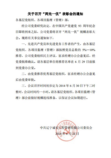 關(guān)于召開“兩先一優(yōu)“表彰會的通知